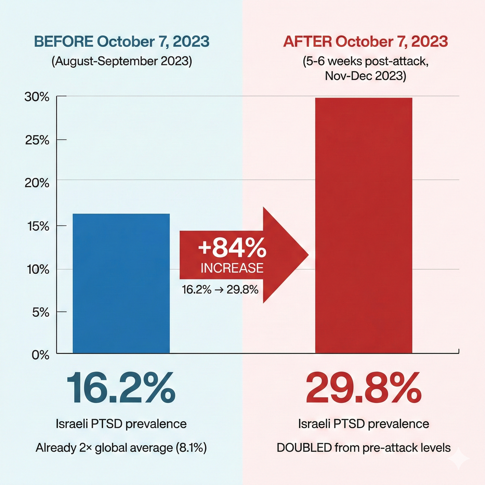 3m Israeli’s dealing with PTSD ,100% increase post Oct 7th – Israel’s deadliest terror attack in history.